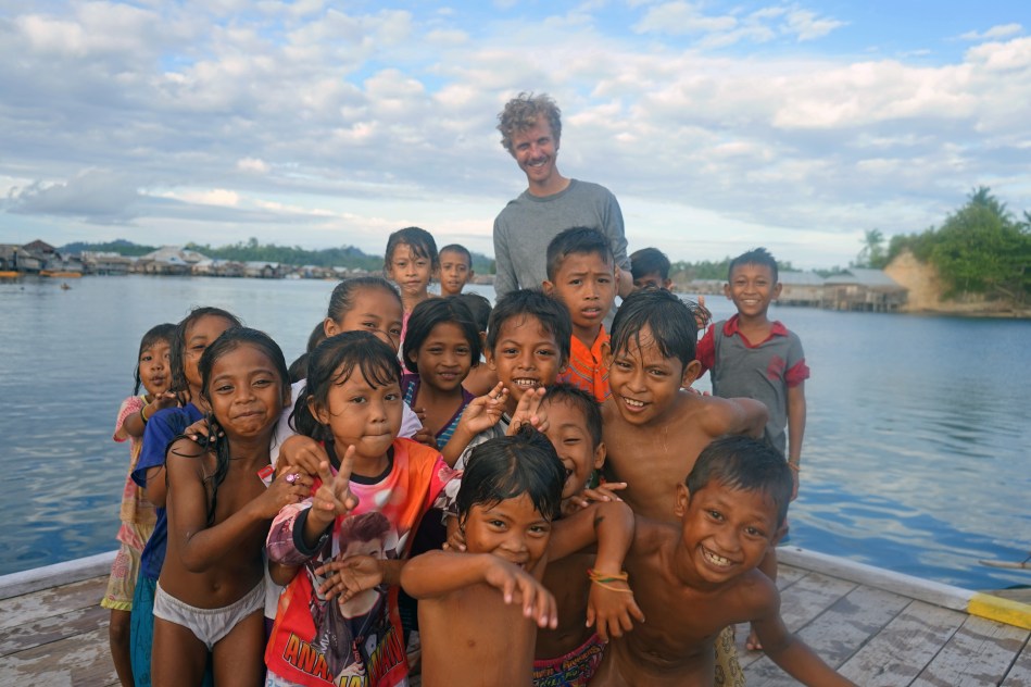 Life of Sama Dilaut – Broken Eardrums, Spear Gun Fishing and Indebtedness » Erik Abrahamsson with Sama Dilaut kids, Kabalutan, Sulawesi, Indonesia
