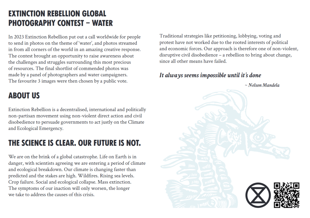 Water is one of our planet’s most precious resources, yet it faces immense challenges worldwide. Extinction Rebellion (XR) organized a global photo competition to raise awareness about these issues, inviting photographers to capture the beauty, struggles, and importance of water. The competition highlighted stories from all corners of the world, showcasing everything from drought-stricken landscapes to communities working to protect this vital resource.