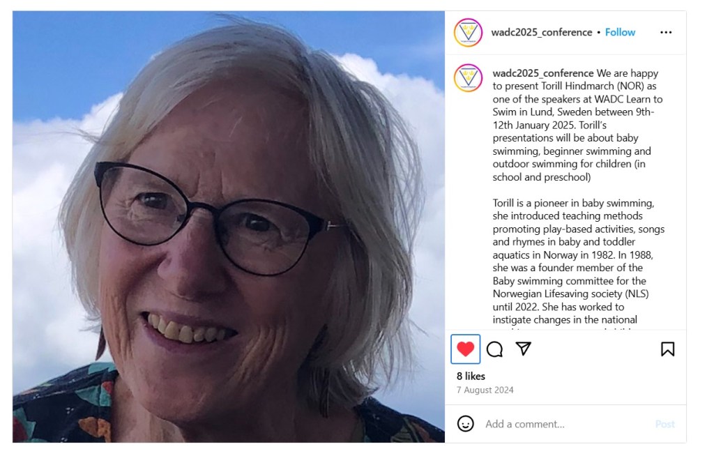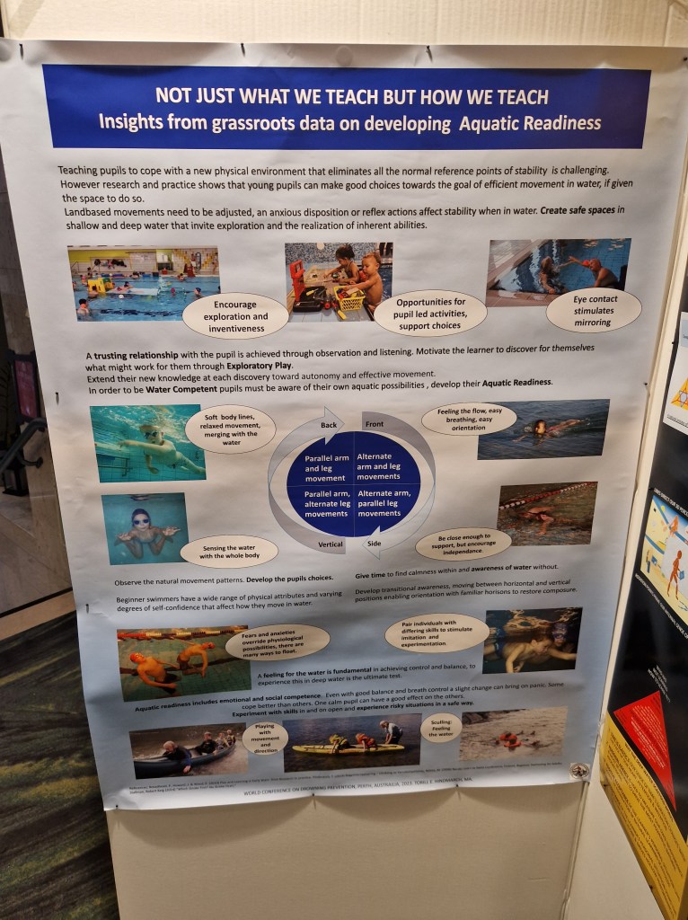 While visiting the poster section of the conference, which took place from 9 to 12 January, I had the privilege of meeting two inspiring individuals: Andrea Andrews, a director of The Lifesaving Foundation in Ireland and a passionate advocate for safe swimming, and Torill Hindmarch, a pioneer in baby swimming. Both Andrea and Torill had made insightful contributions to the poster section.