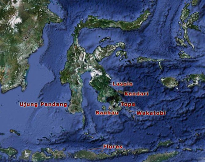 Bajau Laut in Indonesia live in Eastern Kalimantan (Derawan Islands, Tarakan), south Sulawesi (e.g. Ujung Pandang), southeast Sulawesi (e.g. Wakatobi islands, Buton, Kendari, Lasolo), central Sulawesi (Banggai islands, Togian islands), north Sulawesi (Manado, Gorontalo, Torosiaje) and on the Molucca Islands, east of Sulawesi. They are also living in the Lesser Sunda Islands (e.g. Flores) where some Bajo have been accused of illegal fishing in Australian waters.